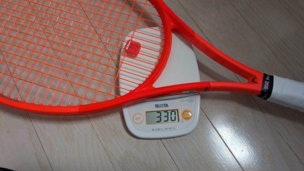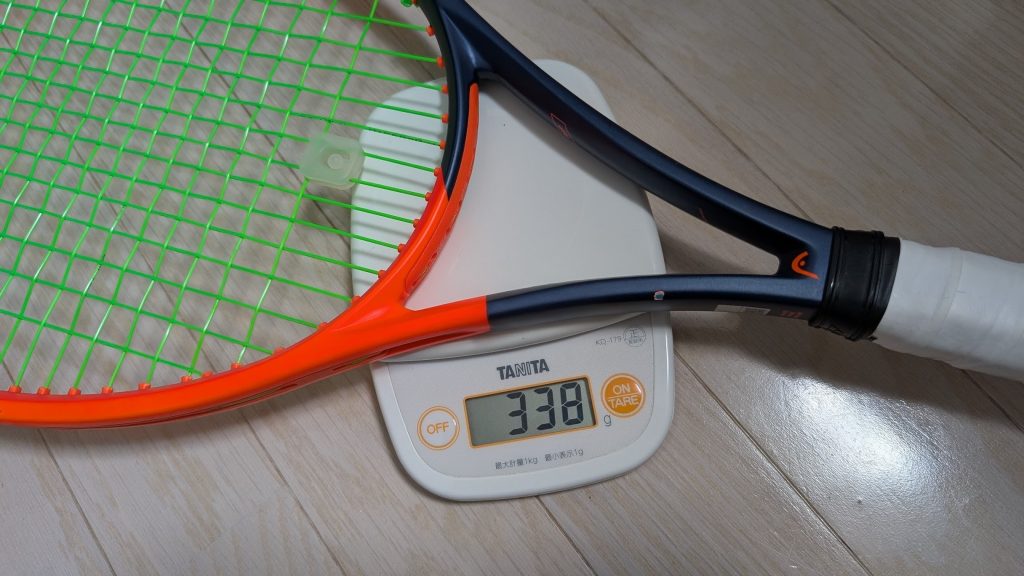 オレンジのラケットにグリーンのガットは、正直「メロン」のようで僕の好みではありませんでした。ギアの見た目が気に入らないと、仕事の合間に「テニスを楽しみにして頑張る」というメンタル的な相乗効果が薄れてしまいます。