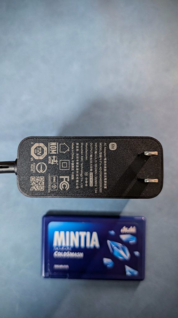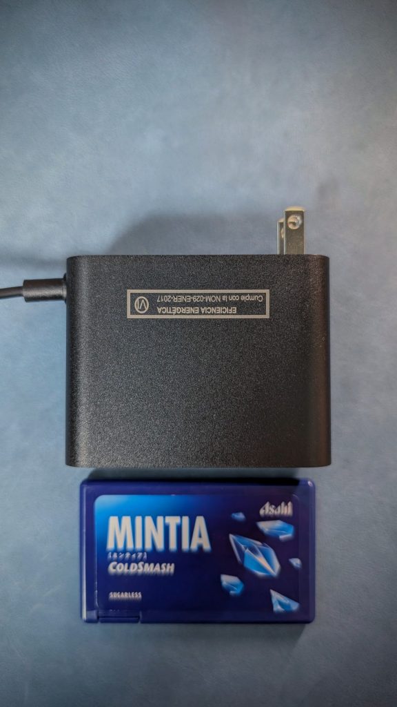これも少し場所を取るポイント。付属の電源アダプターが大きいです。デスク周りのコンセントをスッキリさせたい人にとっては、少しマイナスかもしれません。