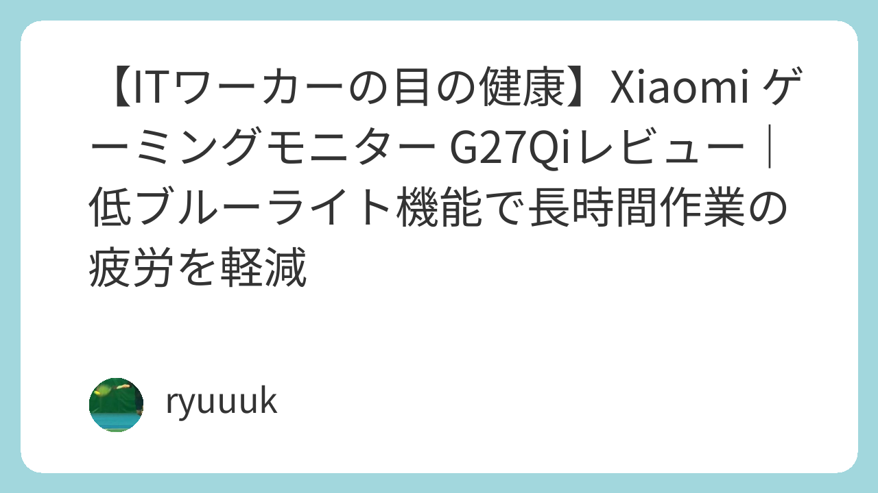 IT系デスクワーカーであり、15年来のテニス愛好家でもある僕(ryuuuk)が、Xiaomi ゲーミングモニター G27Qiを導入して最も実感したのは、単なる映像の美しさではなく、「目の疲れの劇的な軽減」でした。