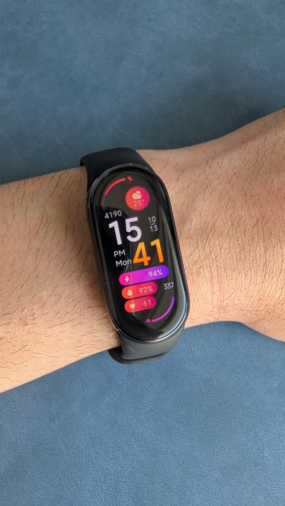 Xiaomi Smart Bandは、つけていることを忘れるほどの軽さとコンパクトさを実現しています。このサイズ感のおかげで、僕は24時間ほぼずっと装着しており、外すのはお風呂に入る時くらいです。
