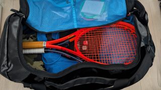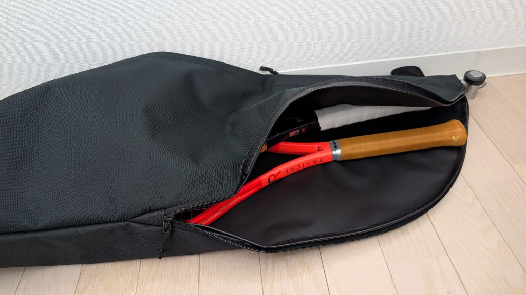 ラケットが2本しっかり収納できるだけでなく、シューズやボールなど、テニスに必要なものが一通り入ります。これ一つあれば、テニスに行く準備はバッチリです。